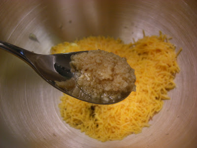 Now we just mix the potato guts with the other ingredients. You could do this by hand with a potato masher, but then we wouldn't get to use my KitchenAid mixer.