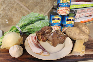 My version of Caldo Gallego was inspired by Bitchin' Camero. Caldo Gallego is a traditional Spanish soup with as many variations as minestrone. It is generally a brothy soup with beans, diced meat, vegetables and greens. My version includes bacon, smoked ham hock, potatoes, diced ham, spanish onion, kale, garlic, cannelini beans and paremsan rinds.